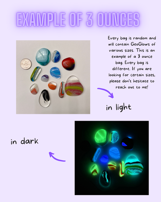 90COE 3 or 5 ounce mix of GeoGlows/ Cabochons