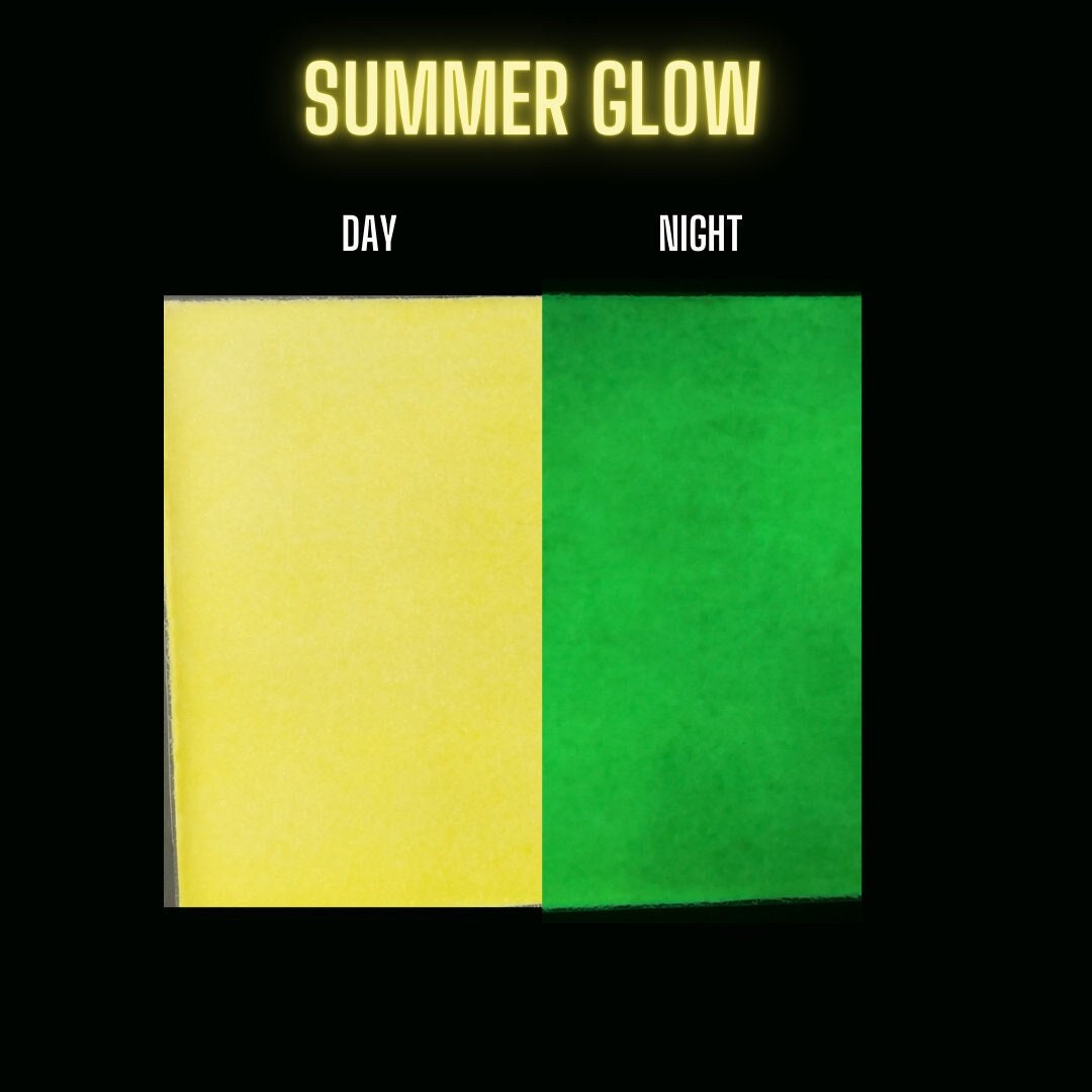COE 90 / Green Glow in the Dark sheet glass/ Yellow during the day, green glow at night/ Summer Glow